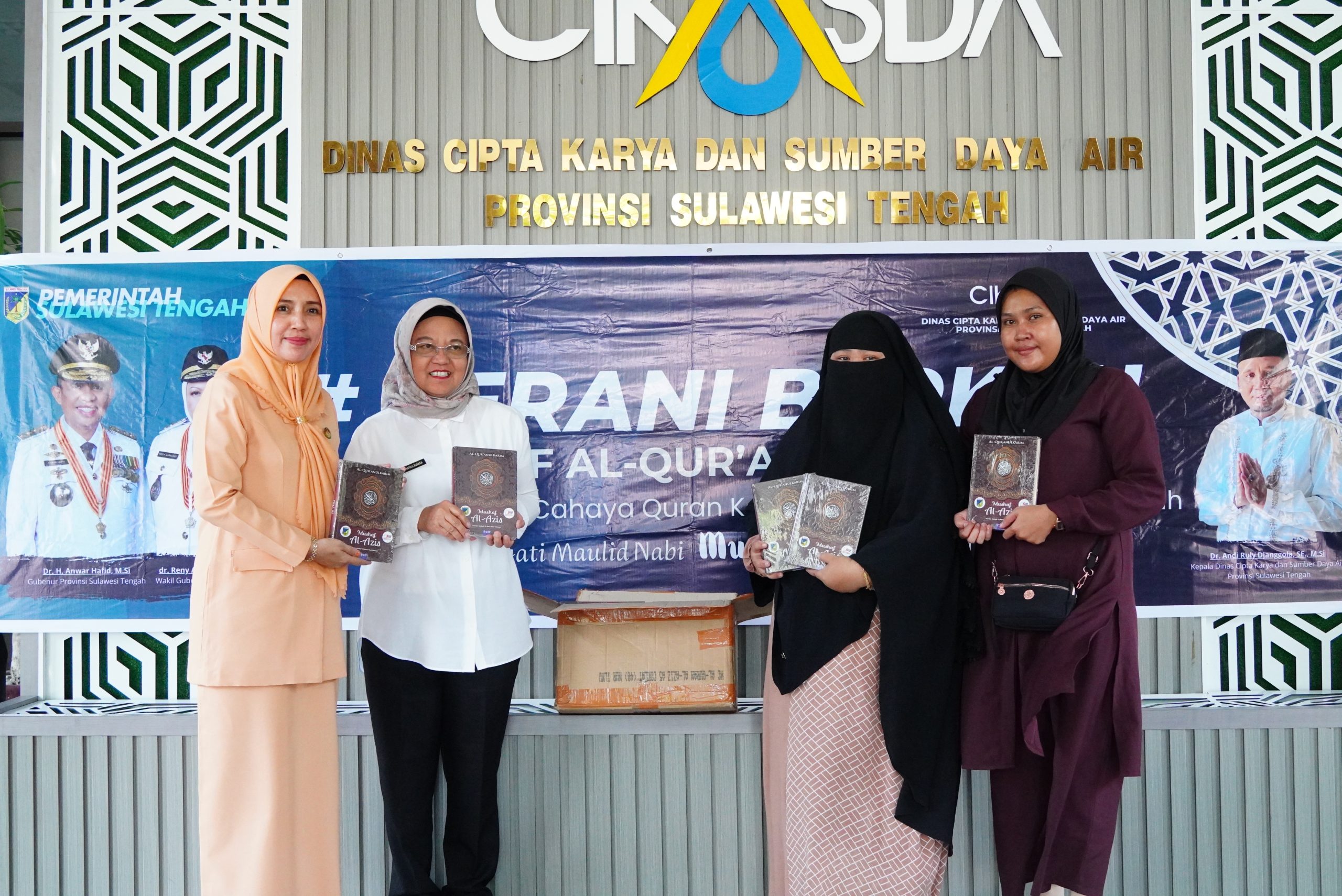 Penyaluran 50 mushaf Al-Qur’an tersebut secara simbolis diwakili oleh Sekretaris Dinas Cikasda, St. Buhafiah B., ST., M.Si, bersama Ketua Dharma Wanita Dinas Cikasda, Hj. Tris Handayani Noor, SAP. yang menyerahkan bantuan tersebut melalui Yayasan Berkah Sinergi Bersama. Selanjutnya, yayasan akan menyalurkan Al-Qur’an tersebut ke berbagai pondok pesantren dan Taman Pendidikan Al-Qur’an (TPQ) di wilayah Sulawesi Tengah.